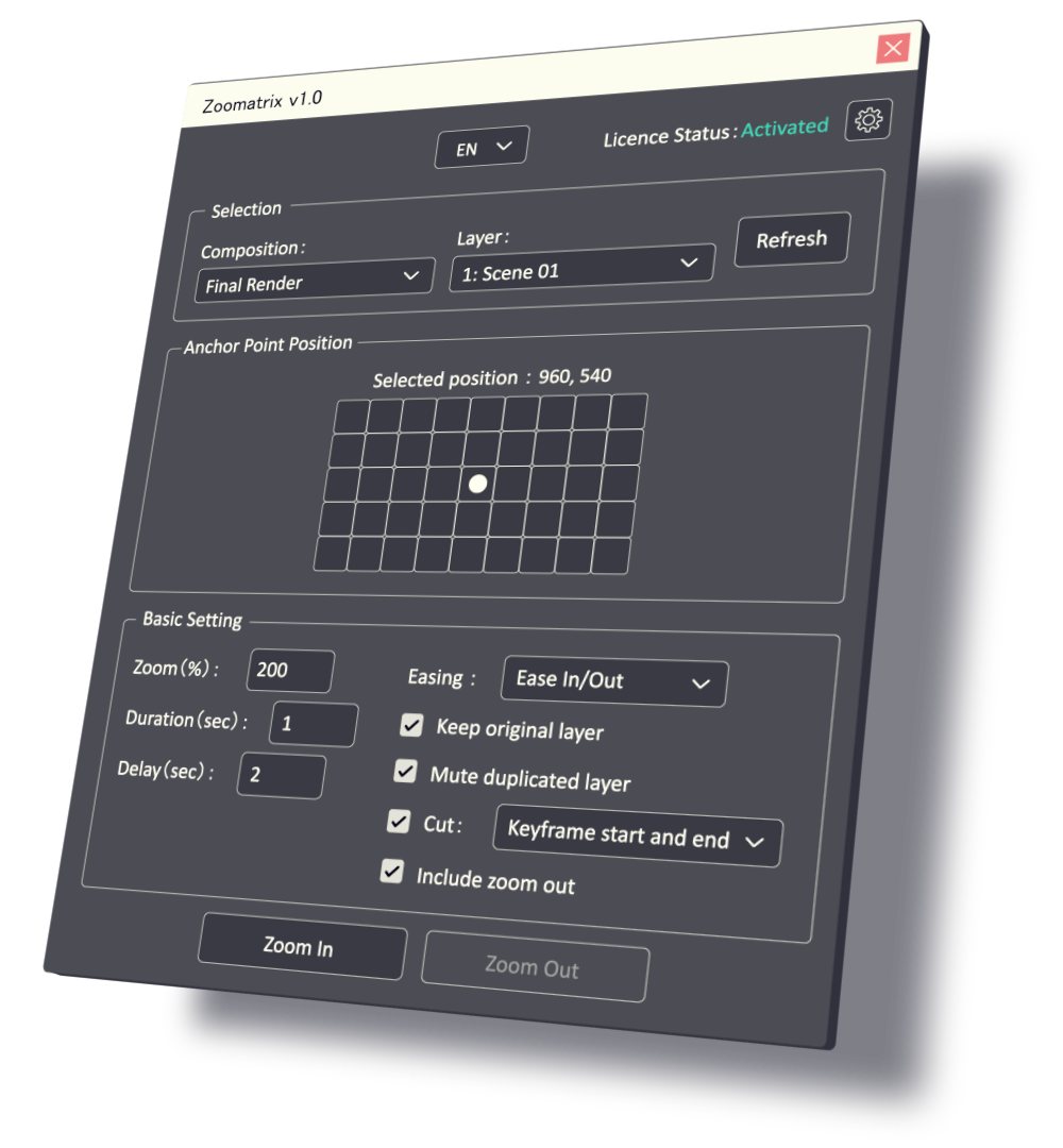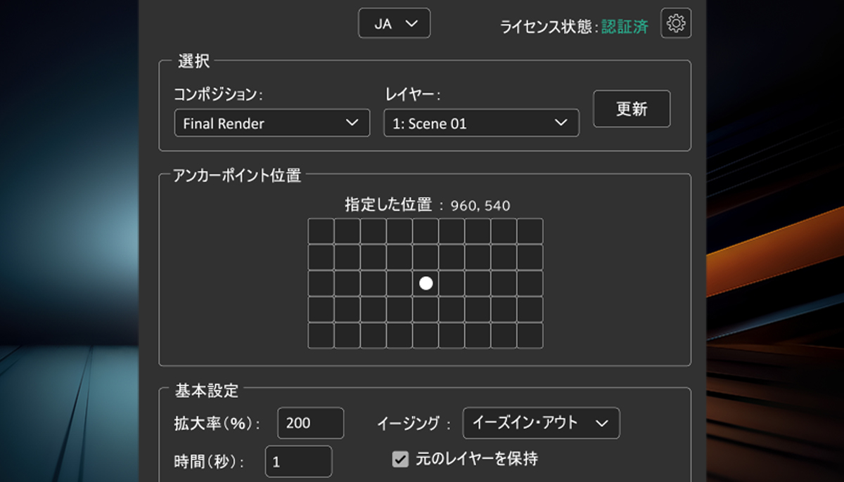 Zoomatrix is a zoom script for After Effects that allows seamless switching between English and Japanese with one click.